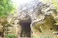 The Hrubá Skála rock town area (Hruboskalské skalní město), with volcanic sandstone pillars, is also significant. A chateau, also called Hrubá Skála,[9] is located high up on a rock platform. The original mansion was built in the 14th century but was extensively damaged over the years and re-built several times, finally in the style of a Renaissance chateau. The property is now operated as a hotel and spa.[4][10]