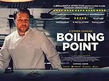 Boiling Point is a 2021 British drama film directed by Philip Barantini and starring Stephen Graham, Vinette Robinson, Ray Panthaki and Hannah Walters. It is a one-shot film set in a restaurant kitchen. It is an expansion of a 2019 short film of the same name, also directed by Barantini and starring Graham.[2][3] It was originally planned to record eight takes of the film, but it was only possible to film half of these before a COVID lockdown led to the end of the shoot.[4]