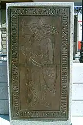A copy of Bolesław's tombstone at the Little Market Square in Kraków .