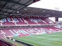 The East Stand was situated on the far side of the Boleyn Ground, opposite the West Stand which housed the offices and dressing rooms. The stand was the oldest and smallest stand in the stadium, being built in 1969[35] and held only 5,000 seats due to its narrow width. The stand was known as the loudest and most intimidating stand at Upton Park.[36] The stand was known as the 'Chicken Run', a name that had originally been applied to an earlier stand. This was an old wooden stand (standing room only) on the east side of the pitch. Unusually, the roof sloped down away from the pitch and it was surrounded by a similar sort of wire to that used on chicken runs, so when viewed from the opposite side of the ground it looked like a chicken run. The front of the stand was very close to the pitch. It was knocked down and rebuilt in 1969.[36]