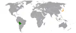 Bolivia–Japan relations refers to the diplomatic relations between Bolivia and Japan. Both nations enjoy friendly relations, the importance of which centers on the history of Japanese migration to Bolivia. Approximately 14,000 Bolivians have Japanese ancestry.[1] Both nations are members of the Forum of East Asia–Latin America Cooperation.
