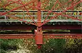 The Bollman Truss Railroad Bridge at Savage, Maryland is the sole surviving example of a revolutionary design in the history of American bridge engineering.[5] The 160-foot (48.8 m) double-span is a suspension truss bridge.[2] The first Bollman bridge was installed on the site; however, the current bridge is not the original. The current bridge was built in 1852 and moved to the site thirty years later.[2][5] It is one of the oldest standing iron railroad bridges in the United States. Currently, however, it is in use carrying the Savage Mill Trail across the Little Patuxent River.