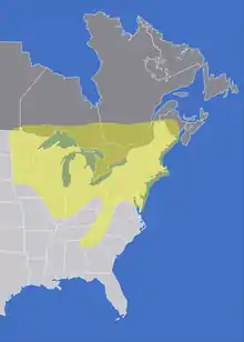 Found in parts of the Northeastern area of North America. Their distribution includes eastern to central parts of Canada, Northeastern U.S states and parts of the mid-western and southeast regions of the U.S.[3]