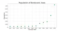Bondurant was founded in 1884. In 1892, the Chicago Great Western Railway built the Bondurant railway station.[7] Bondurant incorporated as a city on December 23, 1897.[8] The city was named for Alexander C. Bondurant, who was the area's first settler in 1857.[9]