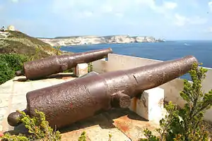 Maritime traffic through the strait however was significant and it could hardly have neglected the fine harbour at Bonifacio. The most popular choice for Marianum Promontory therefore is Cape Pertusato, southernmost point of Corsica island, about 9 kilometers (6 mi) east of the harbor, with Bonifacio itself as Marianum town.[8] A second possibility would be the first century AD Roman ruins adjoining Piantarella Beach near the village of Ciappili and next to the grounds of Sperone golf course, a recreational suburb to the west of Bonifacio, but those ruins appear to represent a Roman villa and the beach though eminently suitable for recreation is of little value as a port. More likely the villa belonged to a citizen of Bonifacio as Marianum.