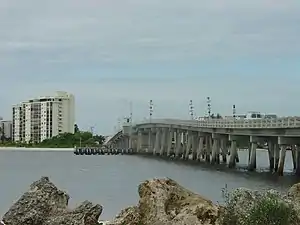 The Bonita Beach Causeway is a series of four low-level bridges located in Southwest Florida traversing the barrier islands of Estero Bay connecting the town of Fort Myers Beach with Bonita Springs. It carries Estero Boulevard (County Road 865) and is four miles (6.4 km) long from end to end. Each bridge on the Bonita Beach Causeway is named after the body of water it crosses.