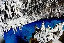 • Abismo Anhumas (Anhumas Abyss) – Rappelling 72 metres (236 ft) down into a cave and an underground, crystal-clear lake, 80 metres (260 ft) deep, with an area equivalent to the size of a football field. Snorkeling or diving reveal the breathtaking beauty of this place: some of the largest underwater stalagmites in the world, up to 18 metres (59 ft) high.