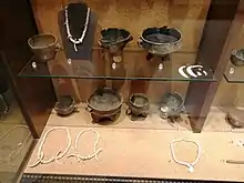 Bonnanaro sites, mostly burials, are scattered throughout Sardinian territory, with a higher concentration in the mining regions of Nurra and Sulcis-Iglesiente and in the Campidano.[4] Ceramics were smooth and linear without decorations and characterized by handles. Numbers of metal objects increased and the first swords of arsenical bronze appeared.
