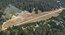 Bonny Doon Village Airport - FAA Identifier CL77, is a private, single-runway airport located 8 miles northwest of Santa Cruz, California at an elevation of 2020 feet in the mountain community of Bonny Doon. The airport has no air traffic controller or other aviation services. Due to surrounding terrain, Runway 12 is used for departure with a usable length of 2400 feet. Runway 30 is used for landing and has a threshold displaced 390 ft. The traffic pattern altitude has been established at 1000 feet above ground level with a left turn landing pattern. The 35 foot wide asphalt runway is marked and well maintained. Although the field has a lighted windsock and non FAA compliant runway lighting, the airport is approved for day use only. Prior permission for use is required from the airport owner.