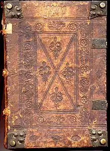 The custom of binding several wax tablets together (Roman pugillares) is a possible precursor of modern bound (codex) books.[7] The etymology of the word codex (block of wood) also suggests that it may have developed from wooden wax tablets.[8]