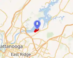 Booker T. Washington State Park is a 353-acre (1.43 km2) park situated on the shores of Chickamauga Lake. It was built largely by African-American units of the Civilian Conservation Corps. It was originally designated under segregation as one of two Tennessee State Parks for use by blacks (the other being T. O. Fuller State Park near Memphis) until discrimination in public accommodations in the United States was banned under the Civil Rights Act of 1964.