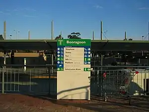Booragoon bus station is a Transperth bus station located next to the Garden City Shopping Centre in Booragoon Western Australia. It has 13 stands and is served by nine Transperth routes operated by Transdev WA, in addition to a number of school buses and School Special services. The Booragoon Bus Station, is located at the corner of Riseley and Marmion Streets, and is the fourth bus station to have existed on the shopping centre premises, being built upon the site previously occupied by the Booragoon Hotel. Previous iterations of the Bus Station have existed at various locations on the premises, including at the main entrance from Riseley Street, adjacent the Booragoon Hotel (slightly west of the current ANZ Branch) and adjacent to Davy Street before the road was rerouted as a result of car-park expansions. Continued expansion of the shopping centre has necessitated construction of new stations.