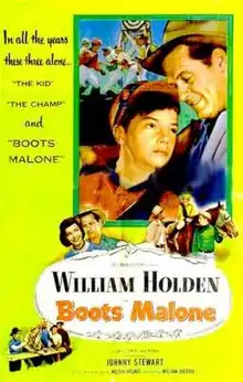 Boots Malone is a 1952 American film noir drama film directed by William Dieterle. It stars William Holden as a down-on-his-luck sports agent and Johnny Stewart as a rich runaway who wants to become a jockey.