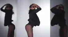 To further promote "A.K.A.", Lopez shot teaser videos for some tracks of the album. The first was "Emotions", followed by "Worry No More"[37] and "Booty". For the video, the singer wore printed leggings and a cherry-colored crop top with a snapback hat, transitioning into sequin booty shorts and a matching crop top.[38] The one-minute teaser clip for "Booty" sees Lopez and a group of backup dancers in patterned tights twerking form against an industrial backdrop.[39] Zayda Rivera of New York Daily News further explained the storyline: "Her voluptuous backside takes center stage in the music video as Lopez displays her own take on the dancing craze while instructing other women on just how to move it."[40] Rivera also commented that the video "quickly confirmed why she's dominated dance in pop music since her big break as a Fly Girl on the hit ’90s sketch comedy series 'In Living Color'."[40] Alex Heigl of People agreed, stating: "This is not some new-to-the-twerking-game rookie. This is how it's done. We hope you're ready."[41] Rachel McRady of US Magazine declared that Lopez "reclaimed her title of most diva-licious derriere in the new teaser video for her upcoming single 'Booty'."[38] Mike Wass of Idolator called the video's visual "hands-down the best thing you will watch today. Or ever."[42]
