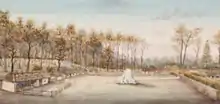 Until February 1843 Simpson was also the acting chief administrator of the settlement of Moreton Bay (Brisbane) and it wasn't until this date that he was able to establish his commissioner headquarters and Border Police station at Woogaroo on the Brisbane River. In March 1843, Simpson and his troopers blazed the first colonial road from Moreton Bay to the mouth of the Mary River.[117] The first major operation of the Moreton Bay Border Police against the local native population was in September 1843 in a skirmish which has come to be known as the Battle of One Tree Hill. Yugara people led by Moppy and Multuggerah had pushed back against settler encroachment into the Lockyer Valley by raiding squatting properties, killing shepherds, robbing drays and blocking the main road connecting Moreton Bay with the Darling Downs. Local squatters in the region, unable to control the resistance, petitioned the colonial government for military aid. In response to these requests, the colonial government assembled a large expeditionary force, which included Simpson and his troopers, the Border Police from the Darling Downs district under Christopher Rolleston as well as soldiers from the 99th Regiment of Foot and armed settlers. The Yugara retreated to Mount Davidson near the present locality of Blanchview from where they were able to repulse several attacks by rolling large rocks down towards the expeditionary force. However, the hill was eventually stormed by the expeditionary force, killing numerous Yugara and taking an immense number of spears and tools. Several Yugara encampments in the era were later destroyed, and a sentry of soldiers was established at Soldier's Flat (two miles from the modern-day town of Helidon) to prevent any further attacks on the road.[118][119][120] Aboriginal resistance continued in the area and Simpson's troopers were also kept busy arresting bushrangers[121] and investigating assaults and non-payment of wages of Indian coolie labourers working in the district.[122]