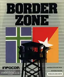 Border Zone is an interactive fiction video game written by Marc Blank and published by Infocom in 1987. It was released for DOS, Apple II, Commodore 64, Amiga, Atari ST, and Macintosh. Unlike most other purely text-based games, Border Zone incorporates real-time aspects of gameplay. It is also Infocom's thirtieth game. Its tagline is "Action and international intrigue behind the Iron Curtain."