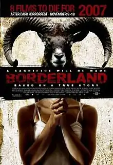Borderland is a 2007 American-Mexican horror film written and directed by Zev Berman. It is loosely based on the true story of Adolfo de Jesús Constanzo, a drug lord and the leader of a religious cult that practiced human sacrifice.[1][2] Costanzo and his followers, called the Narco-satanists,[3] kidnapped and murdered University of Texas junior, Mark J. Kilroy, in the spring of 1989.