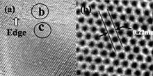 BN nanosheets consist of sp2-conjugated boron and nitrogen atoms that form a honeycomb structure.[4][5] They contain two different edges: armchair and zig-zag. The armchair edge consists of either boron or nitrogen atoms, while the zig-zag edge consists of alternating boron and nitrogen atoms. These 2D structures can stack on top of each other and are held by Van der Waals forces to form few-layer boron nitride nanosheets. In these structures, the boron atoms of one sheet are positioned on top or below the nitrogen atoms due to electron-deficient nature of boron and electron-rich nature of nitrogen.[5][6]