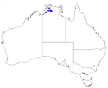 This boronia grows in woodland in Kakadu National Park north of the Mary River and the Waterfall Creek turnoff.[2][6]