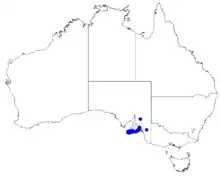 This boronia is common on Kangaroo Island and is well conserved in Flinders Chase National Park and in several conservation parks on the island. It is also found but rare on the Fleurieu Peninsula on the mainland.[3]