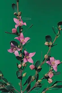 Boronia ruppii, commonly known as Rupp's boronia,[2] is a species of plant in the citrus family Rutaceae and is endemic to a small area in New South Wales. It is a shrub with hairy branches, simple and trifoliate leaves and pink, four-petalled flowers in the leaf axils. It only grows around the abandoned Woodsreef asbestos mine.