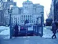 Station entrance at Columbus Park with view of Brooklyn Borough Hall, before the M train was rerouted