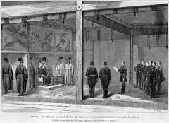 Although the early Meiji era witnessed a warming of relations between the Imperial Court and foreign powers, relations with France temporarily soured due to the initial support by France for the shōgun. Soon however a second military mission was invited to Japan in 1874, and a third one in 1884. A high level of interaction resumed around 1886, when France helped build the Imperial Japanese Navy's first large-scale modern fleet, under the direction of naval engineer Louis-Émile Bertin.[84] The modernization of the country had started during the last years of the shogunate, and the Meiji government ultimately adopted the same policy.[85][86]