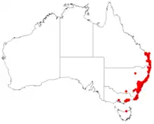 Variable bossiaea grows in a variety of habitats, usually in sandy soils and occurs on the coast and nearby tablelands south from Bundaberg in Queensland, through New South Wales to Victoria as far west as Rosedale. It also occurs in two small populations in northern Tasmania.[3][4][5][9][10]