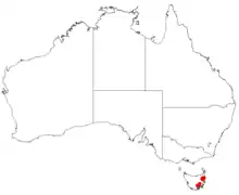 Bossiaea tasmanica grows in forest and woodland in north-eastern Tasmania near Mathinna and in south-eastern Tasmania near Oatlands.[2][3][7]