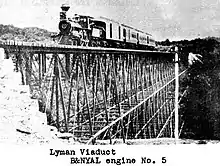 The Boston and New York Air-Line Railroad (commonly known simply as The Air Line, known as the New Haven, Middletown and Willimantic Railroad before 1875) was a railroad in Connecticut.[1] Envisioned as a direct route between New Haven and Boston, it was hampered by difficult terrain in eastern Connecticut and did not find much success. The New York, New Haven and Hartford Railroad leased the company in 1882. The tracks between Portland, Connecticut and Willimantic, Connecticut were abandoned in 1965, while the remainder of the line is operated by the Providence and Worcester Railroad.[1]