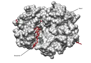 It is an ATP-competitive Bcr-Abl tyrosine-kinase inhibitor with an additional inhibitory effect on Src family kinases (including Src, Lyn and Hck).[1][2] It has also shown activity against the receptors for platelet derived growth factor and vascular endothelial growth factor.[3] Bosutinib inhibited 16 of 18 imatinib-resistant forms of Bcr-Abl expressed in murine myeloid cell lines, but did not inhibit T315I and V299L mutant cells.[1]