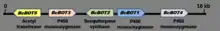 4 other genes are then involved in the biosynthesis of botrydial: 3 genes that encode for a P450 monooxygenase (BcBOT3, BcBOT1, BcBOT4) and a BcBOT5 gene whose amino acid sequence showed high homology to known acetyl transferases.