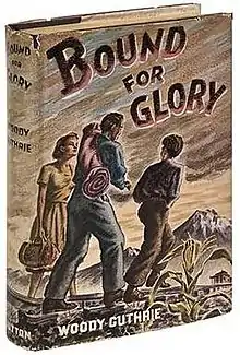 Bound for Glory is the partially fictionalized autobiography of folk singer and songwriter Woody Guthrie. The book describes Guthrie's childhood, his travels across the United States as a hobo on the railroad, and towards the end his beginning to get recognition as a singer. Some of the experiences of fruit picking and a hobo camp are similar to those described in The Grapes of Wrath.