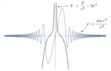 First of all, we take a function , then . These are divergent spherical waves, since the energy is greater than the potential , the classical kinetic energy remains positive. The wave function belongs to a continuous spectrum, the integral diverges. Let's try to change the wave function so that the quadratic integral converges and the potential varies near -1.