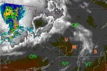 The Boundary Waters–Canadian Derecho (also called the Boundary Waters Blowdown) was an international derecho that occurred during the afternoon and evening hours of July 4 and the early morning hours of July 5, 1999. It traveled 1,300 miles (2,092 km) and lasted 22 hours.[1]