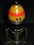A bourrelet is a portion of an elongated artillery projectile which is used in conjunction with the projectile's driving band, or rotating band, to stabilize its flight.[1]