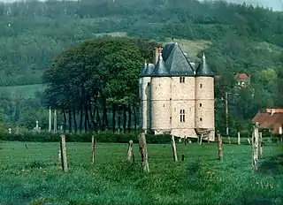 - The (restored) castle donjon, also from the eleventh century. Built of sandstone by Hugues de Bours.