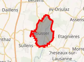 The municipality is located in the southern Gros-de-Vaud area. It consists of the village of Boussens and the hamlets of Chevrine and Grange aux Aguet.