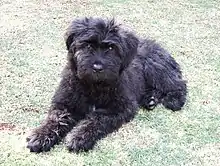 The monks at the Ter Duinen monastery were among the earliest known dog breeders in Flanders. The bouviers bred by them are recorded as having been bred from imports such as Irish wolfhounds and Scottish deerhounds with local farm dogs, until a breed considered to be the predecessor of the modern Bouvier des Flandres was obtained. This became a working dog able to perform tirelessly, herding and guarding cattle and even pulling cargo carts, thanks to its strength and temperament, and to withstand the local weather conditions due to its thick coat.[2] The breed's practical use became antiquated after the invention of the automobile, when cattle were more practically transported by trucks.[3]