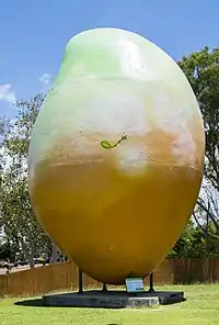The "Big Mango", costing $90,000 to create, was erected in 2002 as a tourist attraction at the Bowen Tourist Information Centre. In February 2014, the 10-metre high, seven-tonne fibreglass structure was reported to be "stolen" as part of a publicity stunt for the region.[63][64]