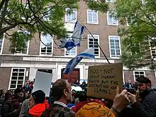 In Israel, BDS is supported by a number of left-wing groups, such as Women in Black, ICAHD, ACRI, and New Profile.[93] Boycott from Within often uses creative performances to display its support for the boycott and the research group Who Profits supplies BDS with information about companies complicit in the Israeli occupation.[94] On campuses in the U.S., Canada and New Zealand, the student organization Students for Justice in Palestine supports BDS. According to the American coordinating body National Students for Justice in Palestine, it had about 200 chapters in the U.S. as of 2018.[95] The left-wing activist organization Jewish Voice for Peace (JVP) advocates for BDS among American Jewry.[96]