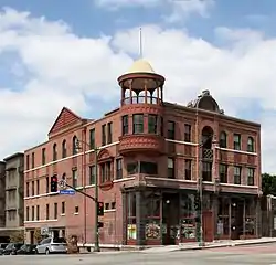 The historic 1889 Boyle Hotel is across the street from the Mariachi Plaza at the corner of Boyle Avenue, First Street and Pleasant Avenue in the East Los Angeles community of Boyle Heights.[5][6][7] The building was formerly a hotel and commercial shops line the first floor of this Queen Anne Style building.[3] In 2007 the building was declared a Los Angeles Cultural Monument.[1][8]