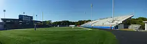 Seating capacity has increased by 6,200 seats since 1980 (5,000 in 1980 and 1,200 in 1998). The original playing surface featured a sand foundation that enabled the field to withstand six inches (152 mm) of rain at one time without altering the footing;[3] however, that surface was replaced with ProGrass synthetic turf during the summer of 2010.