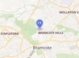 The School is situated in Bramcote Hills on vast campus site which houses other schools, Bramcote Park Business & Enterprise School, Bramcote Hills Primary and Foxwood Foundation School & Technology College within its boundary with Moor Lane, the A52 and Coventry Lane, Bramcote Hills Sports and Community college is accessed by Moor Lane, Bramcote.[12]