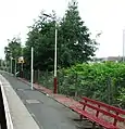Looking down the platform, away from the station building. The posts with the yellow bands are for new CCTV equipment for use by train drivers.