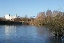 Although the landscape features of the site are mainly derived from gravel pits and settling pools alongside the River Avon, the area was originally farmland, and the first pools were created by mining subsidence in the 1940s and 1950s caused by workings at Binley Colliery.[7] The site was of interest to local naturalists for its range of bird life, especially as by 1959 the area of open water was far larger than it is now, although much was lost when Severn Trent Water dredged it in 1963. Shortly afterwards the first official attempts at using the site for conservation purposes came when the West Midlands Trust for Nature Conservation, supported by the West Midland Bird Club began moves to secure the site as a Site of Special Scientific Interest (SSSI).[8] The Brandon Marsh Conservation Group was formed in 1968, and by 1973 the site had been confirmed as an SSSI. In 1981, the Warwickshire Wildlife Trust (the successor to the West Midlands Trust) came to an agreement with Lafarge whereby the site is leased for a period of 99 years at a peppercorn amount of £1 a year, leading to the creation of the nature reserve.