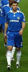 On 15 January 2008, English Premier League side Chelsea confirmed that the club had agreed terms with Lokomotiv for Ivanović's transfer, subject to the agreement of personal terms and the passing of a medical, having beaten competition from the likes of Milan, Ajax, Juventus and Internazionale for his signature.[9] Though the transfer fee was undisclosed, it was speculated to be in the £9 million range.[10] Lokomotiv later announced the transfer fee was €13 million (£9.7 million) and according to the club, the transfer was the largest in Russian football history.[11] Ivanović signed a three-and-a-half-year contract with Chelsea the following day, where he was given the number 2 shirt last worn by Glen Johnson.[12]