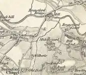 The origins of the name 'Bransford' are uncertain, but it is believed to mean 'hill-top ford' or 'ford at Bragen'. This is derived from 'braegen', old English for crown of the head or topographically a hill and then 'ford'.[4] In the Doomsday Book, Bransford was called Bradnesforde and included information about Urso from the Pershore Church and mill.[5] Bransford was home to Wulstan de Bransford, the Bishop of Worcester from 1338 to 1349.[6] Following the Poor Law Amendment Act 1834 Bransford Parish ceased to be responsible for maintaining the poor in its parish, a responsibility transferred to Martley Poor Law Union.[7] In the 1870s, Bransford was described as