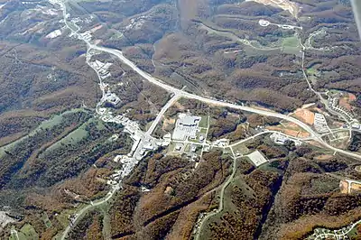 Branson West Airport,[11] also known as Branson West Municipal Airport,[12][13] is a city-owned, public-use airport located two nautical miles (3.7 km) west of the central business district of the Branson West.[11] The airport is also known as Emerson Field, named for Robert Emerson, an aviator and former owner of the property.[13]