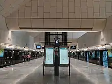 ![]() Escalators in Bras Basah station underneath the reflective pool, which is a key feature of the station. | |||||||||||